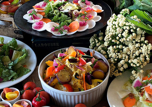 地産地消の新鮮野菜と自家製パンが大人気!新鮮野菜・パンのブッフェを毎日ご用意しております。