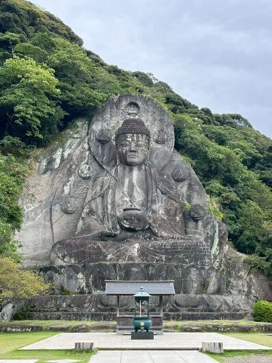 写真には、圧巻の石製大仏や、鋸の刃のように並ぶ尾根、そして東京湾を見下ろす地獄のぞきの景色も収められています。