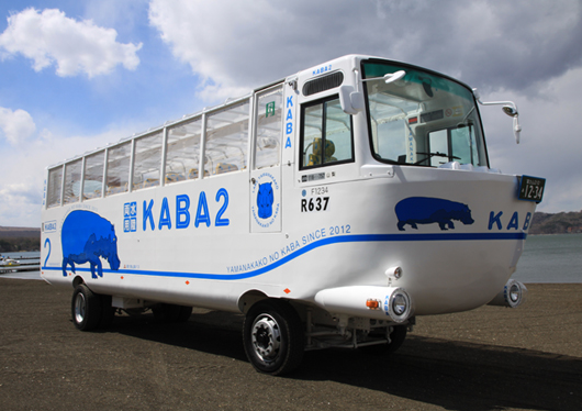 山中湖で注目を集めているのが、日本ではまだ珍しい水陸両用バス「YAMANAKAKO NO KABA」。