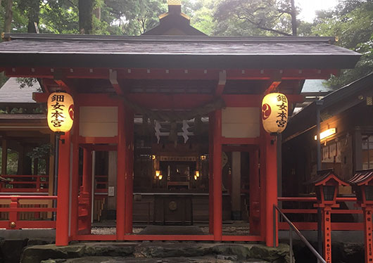 猿田彦大神の妻・天之鈿女命が主祭神として祀られています。芸道の祖神として信仰され、鎮魂の神、夫婦円満の神、縁結びの神として崇敬されています。ここで神前挙式も行われます。