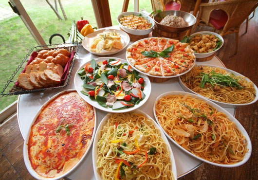 また、施設内にあるいちご一会はビュッフェ形式(食べ放題)のレストランです。イタリアンを中心に常時60種類の多彩な料理を取り揃えています。特にデザートの充実ぶりは女性やお子様に大好評!