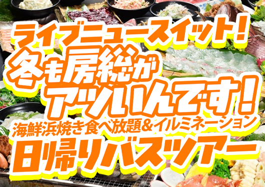 | 催行決定日多数日あり! | <横浜発>【千葉】房総ゴールデンコンビ!海鮮浜焼き食べ放題&いちご狩り食べ放題!感動・絶景・SNS映え!東京ドイツ村イルミネーション♪はちみつ専門店のはちみつの工房&写真SNS映えスポットが集結!! | 13,980 円 ~ 14,980 円 |