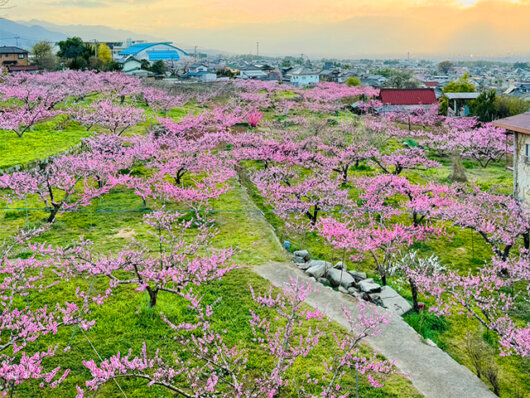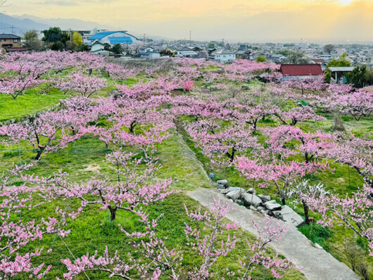 見晴し園周辺一帯は、桃の花が咲き誇る桃源郷の絶景スポット。