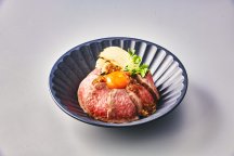 赤城牛を使用したしっかりとクセになる味のローストビーフ丼。 卵と絡めてご堪能ください!!