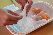 季節のフルーツをあんで覆い、お餅に包んで出来上がり♪おやつ代わりにパクッと召し上がれ♪