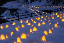 数100個のミニかまくらにロウソクの灯がともされ、その豪華絢爛な美しさは圧巻。「死ぬまでに一度は見たい絶景」に選ばれています。
