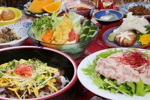 ★暑い夏に嬉しい!もち豚冷しゃぶサラダと海老天入りサラダうどんの昼食!