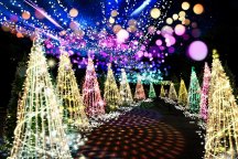 ツインツリーが新たな装いで来場者をお出迎え♪上空ではヒカリの閃光「スーパーサーチライト」が壮大な世界を演出し、敷地中央にある全長約370mの「光のトンネル」は、時間の流れと共に変化を繰り返し、幻想的な世界に包まれ、写真・SNS映えすること間違いなし♪