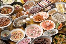 巨大な鉄板で焼き上げるステーキをはじめ、握り寿司、揚げたて天婦羅、ケーキなどのスイーツコーナーまで、約50種類の和洋中料理が食べ放題!クラフトビール6種類とベビーワインも含めた60分飲み放題!もちろんソフトドリンクもOK♪