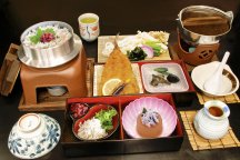 ・しらす釜飯・箱根うどん・ジャンボアジフライ・風呂吹き大根しらすまぶし・口取り3点盛り