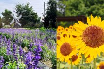 《7月下旬~8月頃にかけてはブルーサルビアやひまわりがお楽しみいただけます》