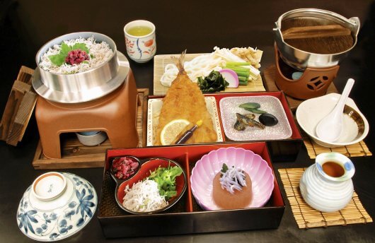 駿河湾産のしらすを贅沢に使ったふっくらご飯のしらす釜飯!さらにジャンボアジフライなど静岡の味をご堪能ください♪
