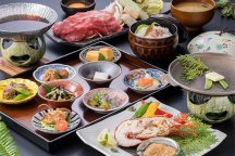 ・昼食はあんちんにて「イセエビと鮑陶板焼き和牛すき焼き御膳」をご用意