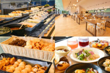 宮沢湖の絶景を一望することができる開放的空間で、埼玉県直送野菜サラダバーやローカル素材を活かした焼たてパン、旬のデザートなど約40品目を味わいながら、ご友人とのお時間、ご家族でのお食事など様々なシーンでお楽しみいただけます☆彡