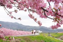 約410本の河津桜を植樹し大きく育った桜並木。早春のひとときを箱根連山・冨士山を眺めながらゆっくり散歩するのはいかがでしょうか?