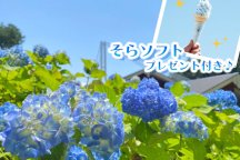 吊り橋を渡った先のあじさい小道にはで205品種13,000株が咲き、色鮮やかな「紫陽花(あじさい)」がお出迎え♪南エリアには季節のお花が飾られた「スカイガーデン」、オシャレなカフェなども見所です!