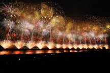 日本三大花火大会の1つであり、2日間で20,000発(過去実績)もの花火が打ち上げられ、打ちあがる音や視界に入りきらないほどに広がる花火の迫力に圧倒されます! 中でも「復興祈願花火フェニックス」は、 開花幅が約2kmにも及ぶ圧倒的なスケールの超ワイドスターマインなど長岡花火大会見所の1つです。 他にも種類豊富な「スターマイン」や圧巻の「尺玉百連発」などここでしか見れない・味わえないものばかりです!