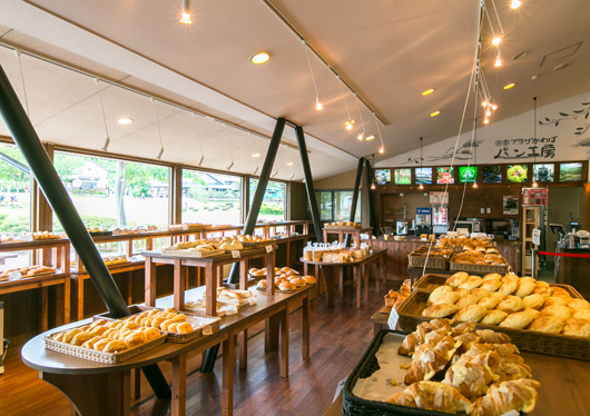 地元の新鮮野菜・果物が買えるファーマーズマーケットや、地元食材を使用したレストラン、ベーカリー、ビール工房などのお店が並んでいます。