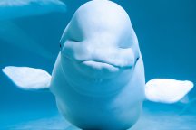 北極海の周辺に棲息する、まっ白い体のベルーガ。かわいい声でよく鳴くことから“海のカナリア”という愛称がつけられています。