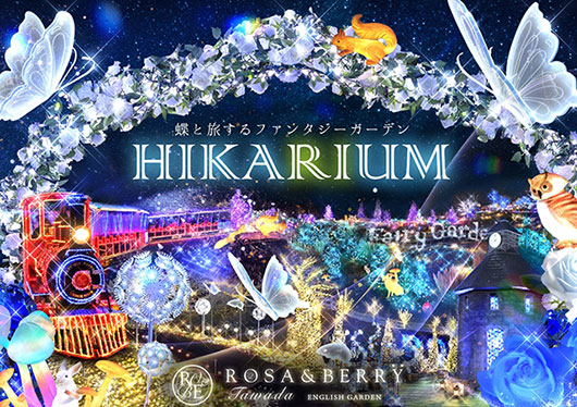 ローザンベリー多和田らしいバラや動植物がモチーフのイルミネーションに、輝く蝶が舞う幻想的な光景が広がる『HIKARIUM~蝶と旅するファンタジーガーデン』。非日常的な光の世界を、蝶と旅するように巡れば、ファンタジックな世界観に没入できる夢のようなひとときを体験いただけます♪